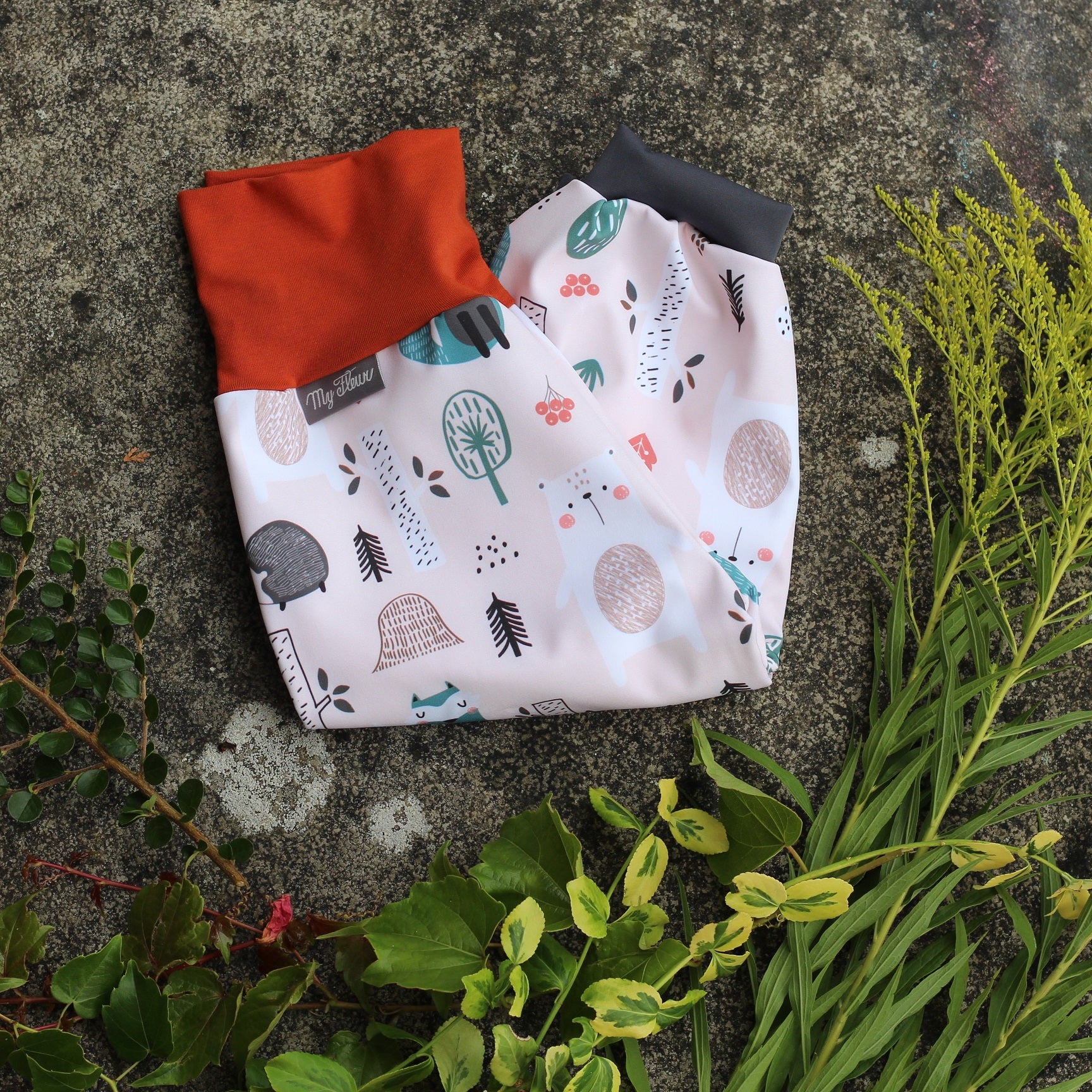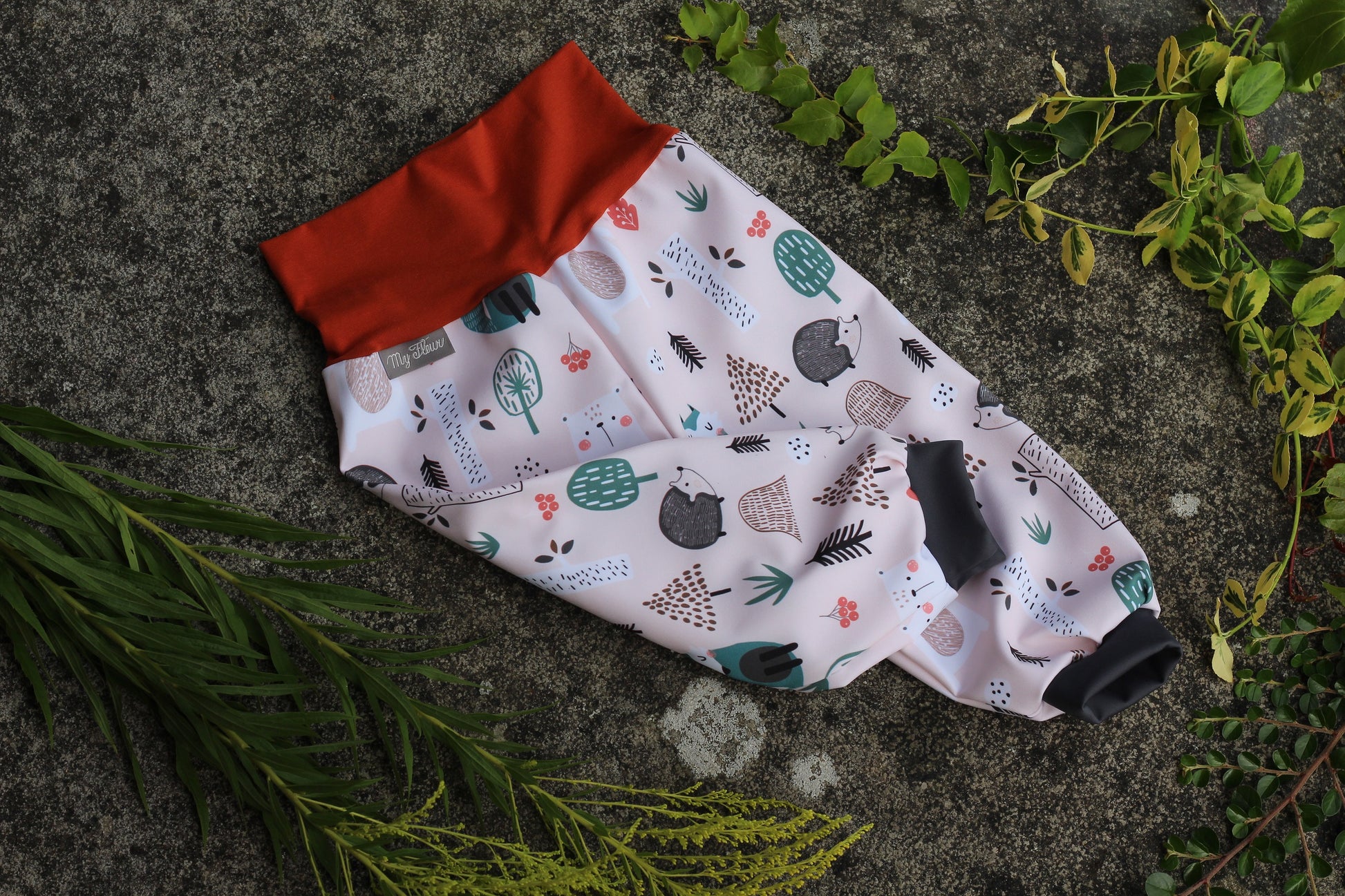 Langlebig: Dank der Säume in der Taille (aus Baumwolle) und an den Hosenbeinen (aus dünnem Softshell), wächst die Hose mit. Der Schritt ist tiefer genäht, damit die Windel genug Platz hat.