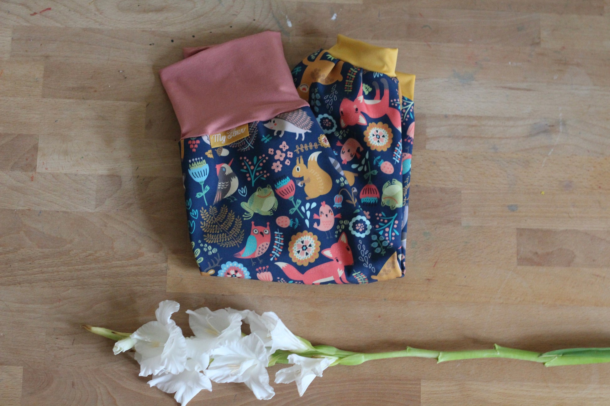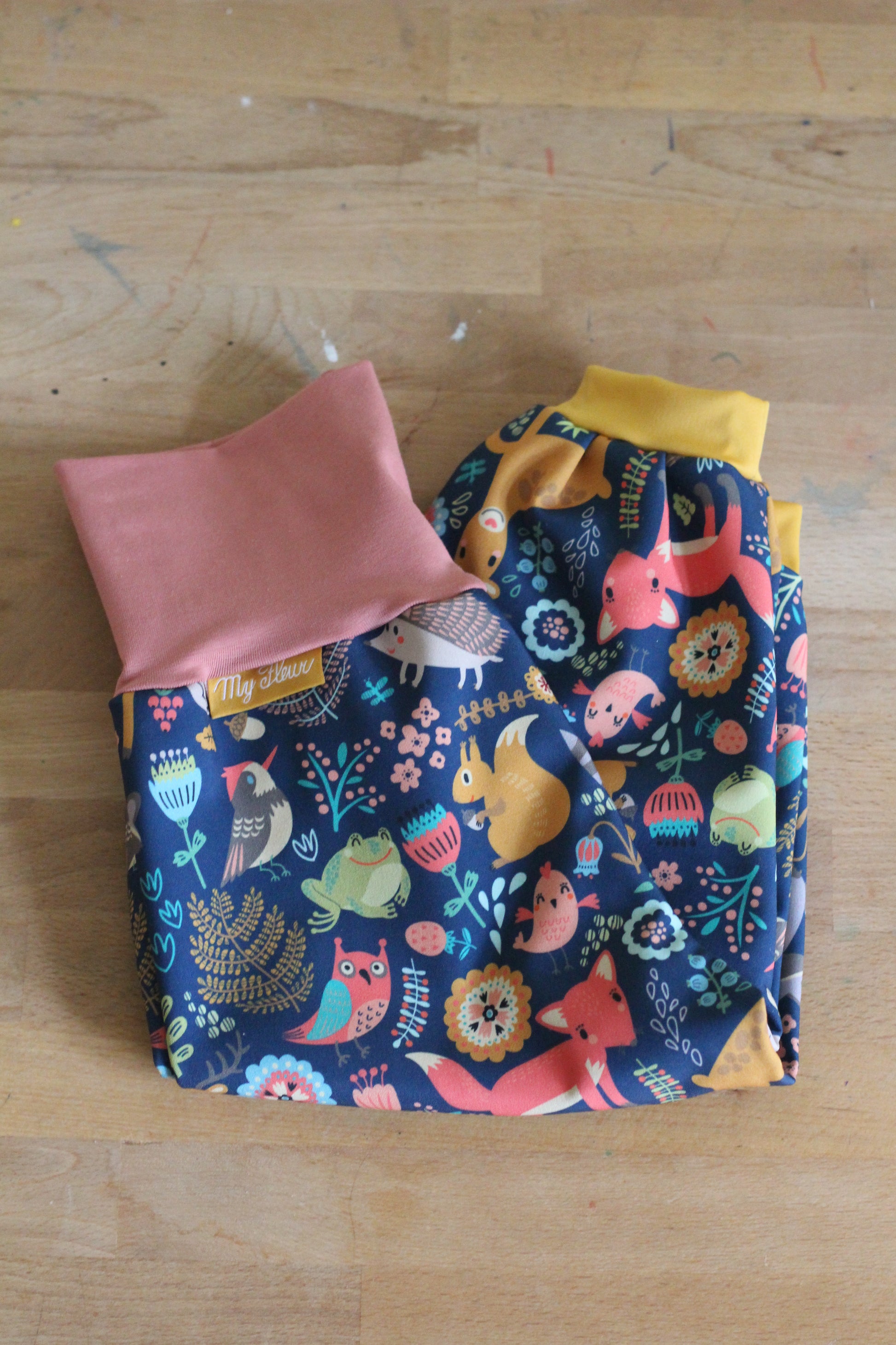 Langlebig: Dank der Säume in der Taille (aus Baumwolle) und an den Hosenbeinen (aus dünnem Softshell), wächst die Hose mit. Der Schritt ist tiefer genäht, damit die Windel genug Platz hat.